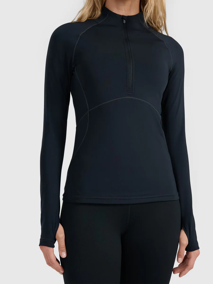 Płaskie szwy ograniczają ryzyko otarć, a dopasowany krój typu slim podkreśla sylwetkę i dobrze układa się pod kolejnymi warstwami.