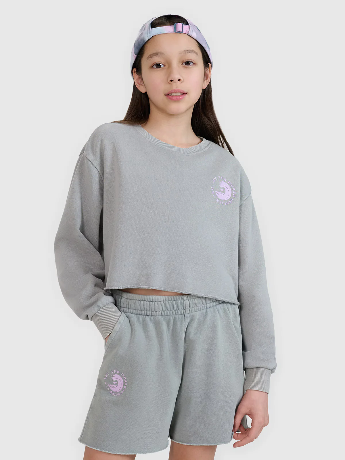 Okrągły dekolt jest zakończony lekkim ribowaniem. Elastyczne mankiety ze ściągaczem. Z przodu widoczny napis „Let the Waves Inspire You”. Klasyczny fason bez kieszeni. Wkładana przez głowę. Obniżone opadające rękawy dodają swobody.