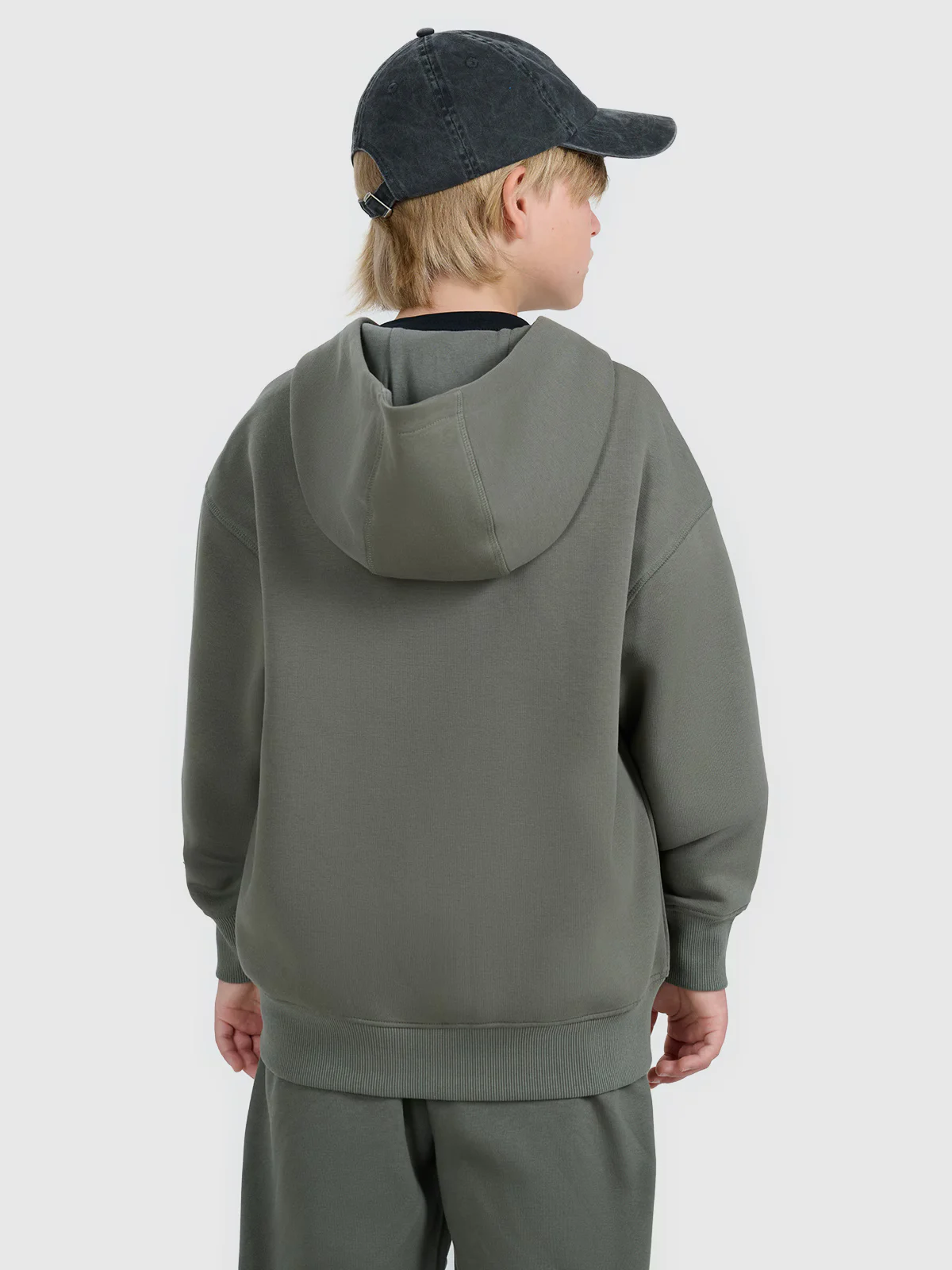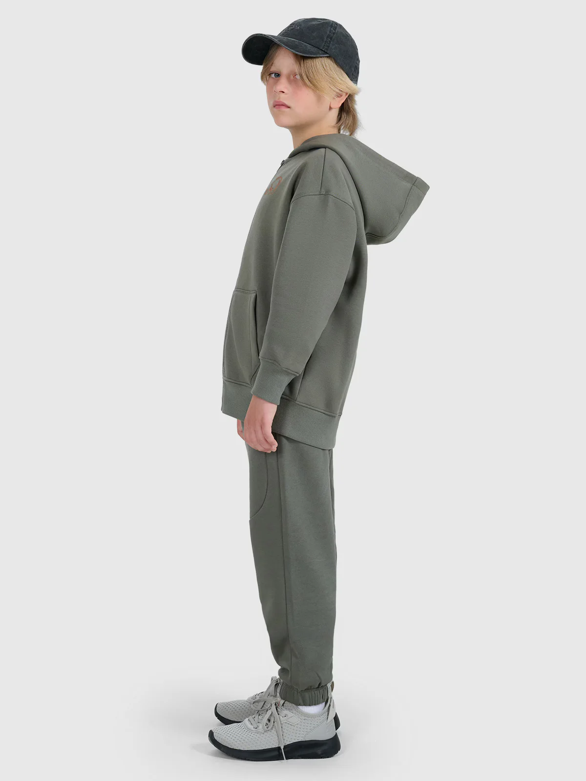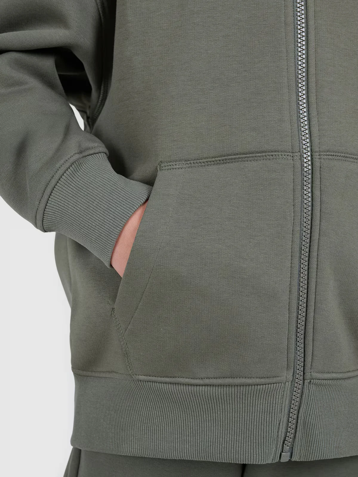 Bluza dresowa rozpinana dla chłopaka jest wykonana w 70% z bawełny, dzięki czemu jest miękka, trwała i przyjemna w dotyku.