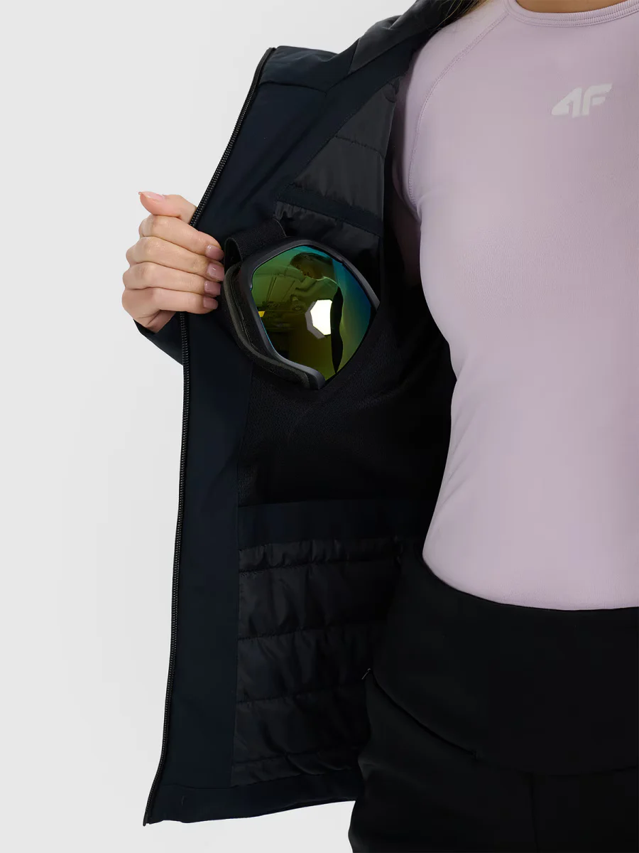 Zintegrowany kaptur z regulacją, profilowane łokcie i regulowane mankiety zapewniają wygodę na stoku. Praktyczne kieszenie na zamek, w tym ski pass i wewnętrzne na gogle czy drobiazgi, pozwalają mieć wszystko pod ręką. Pikowana podszewka i elementy odblaskowe to detale, które robią różnicę. Wyjdź na stok z pewnością, że jesteś gotowa na zimową przygodę.