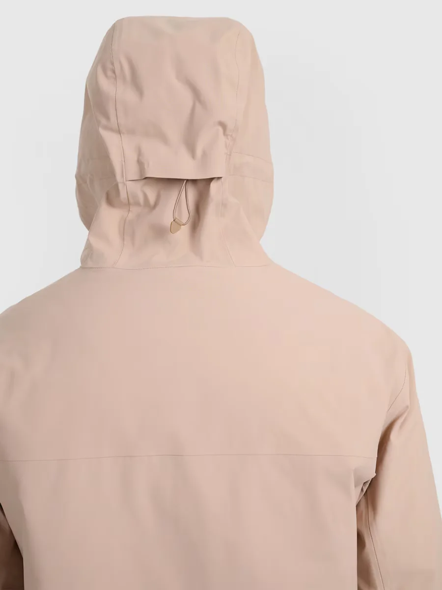 W miejscach szczególnie narażonych na działanie opadów (kaptur i ramiona) zastosowano podklejane szwy krytyczne, które wspierają ochronę przed przenikaniem wilgoci do wnętrza.