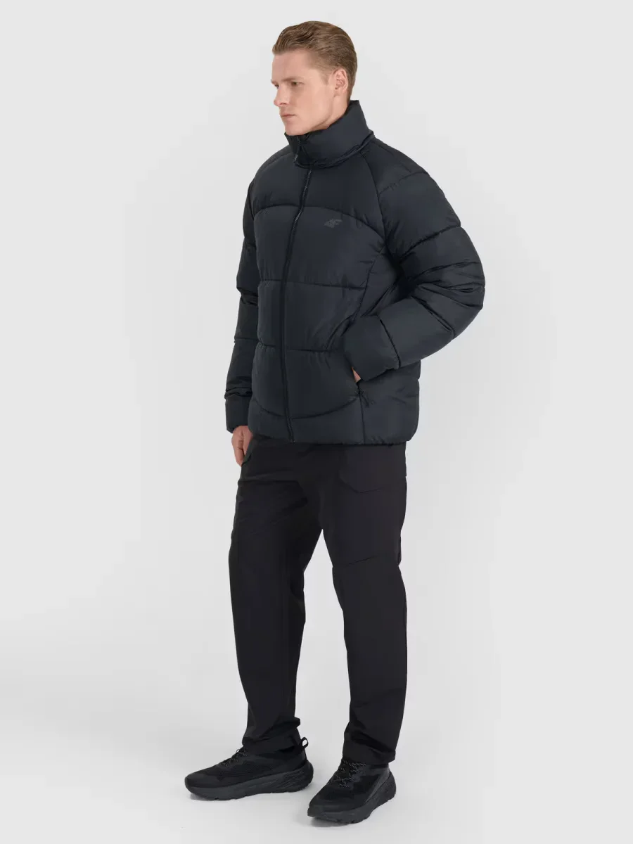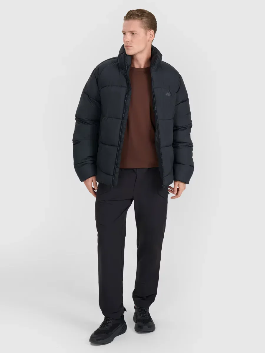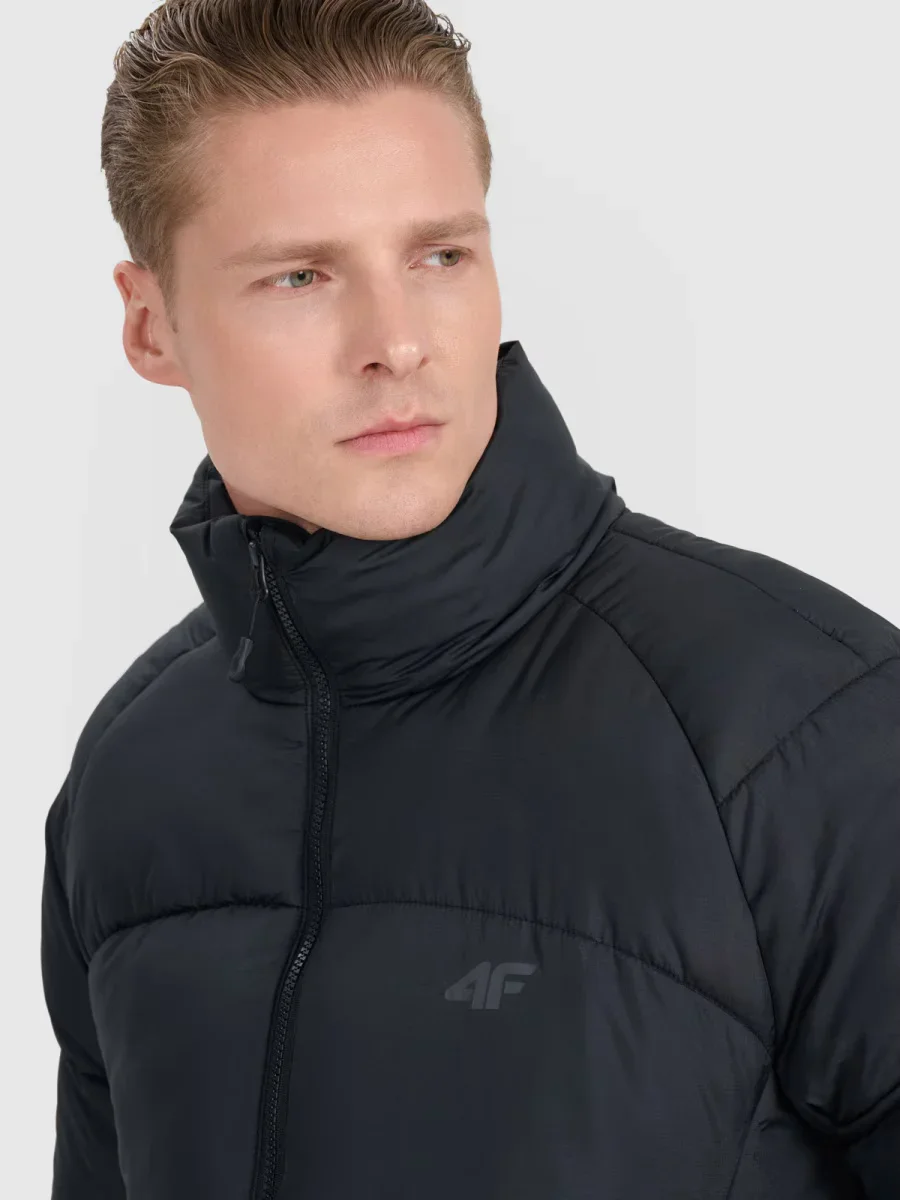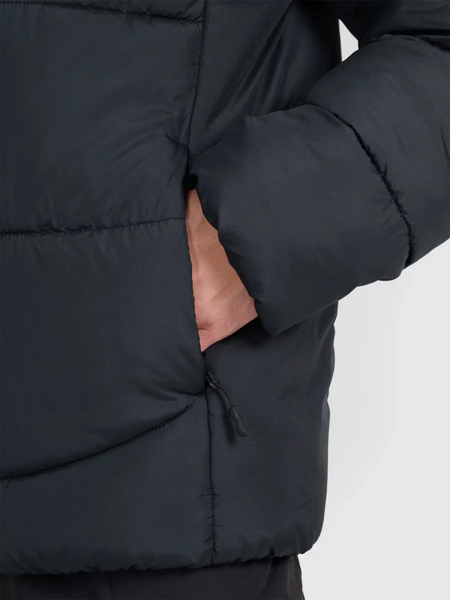 Kurtka puchowa 4F męska z wypełnieniem w postaci puchu syntetycznego, które jest trwalsze i łatwiejsze w utrzymaniu niż puch naturalny. Nawet przy kontakcie z wilgocią, zachowuje swoje właściwości izolacyjne przez dłuższy czas oraz o wiele szybciej schnie.