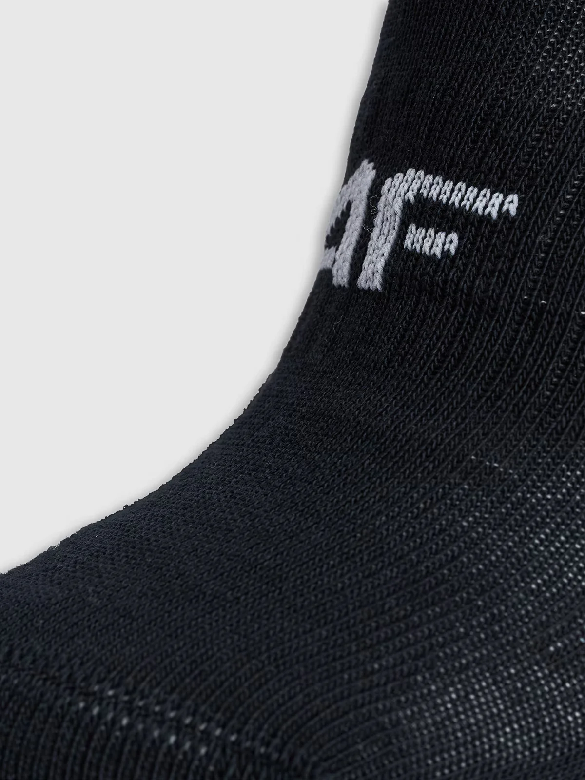 Bezszwowa konstrukcja minimalizuje ryzyko otarć, a bezuciskowe ściągacze utrzymują skarpetkę we właściwym miejscu, bez nieprzyjemnego ucisku. Logo 4F na śródstopiu dodaje sportowego stylu.