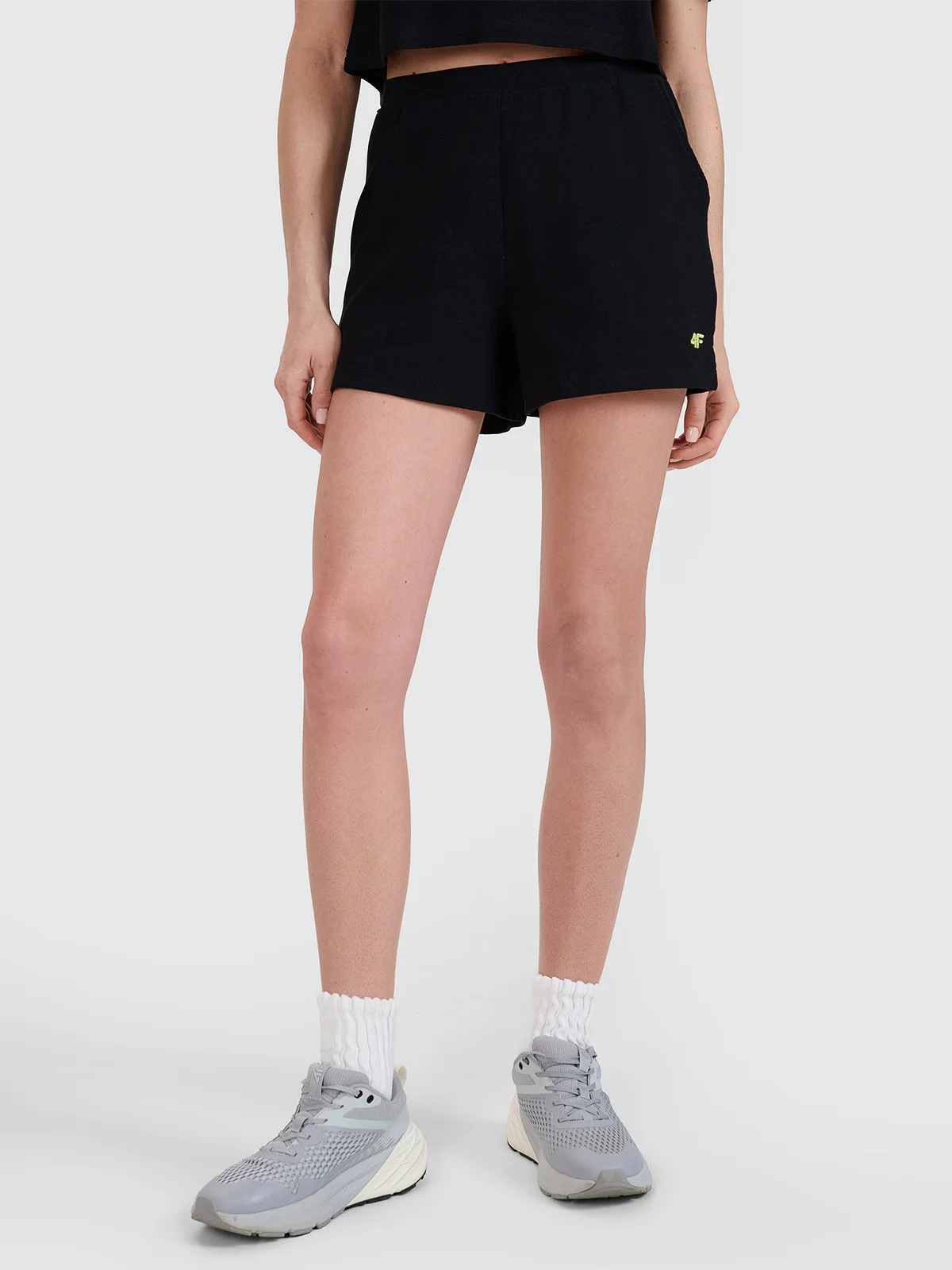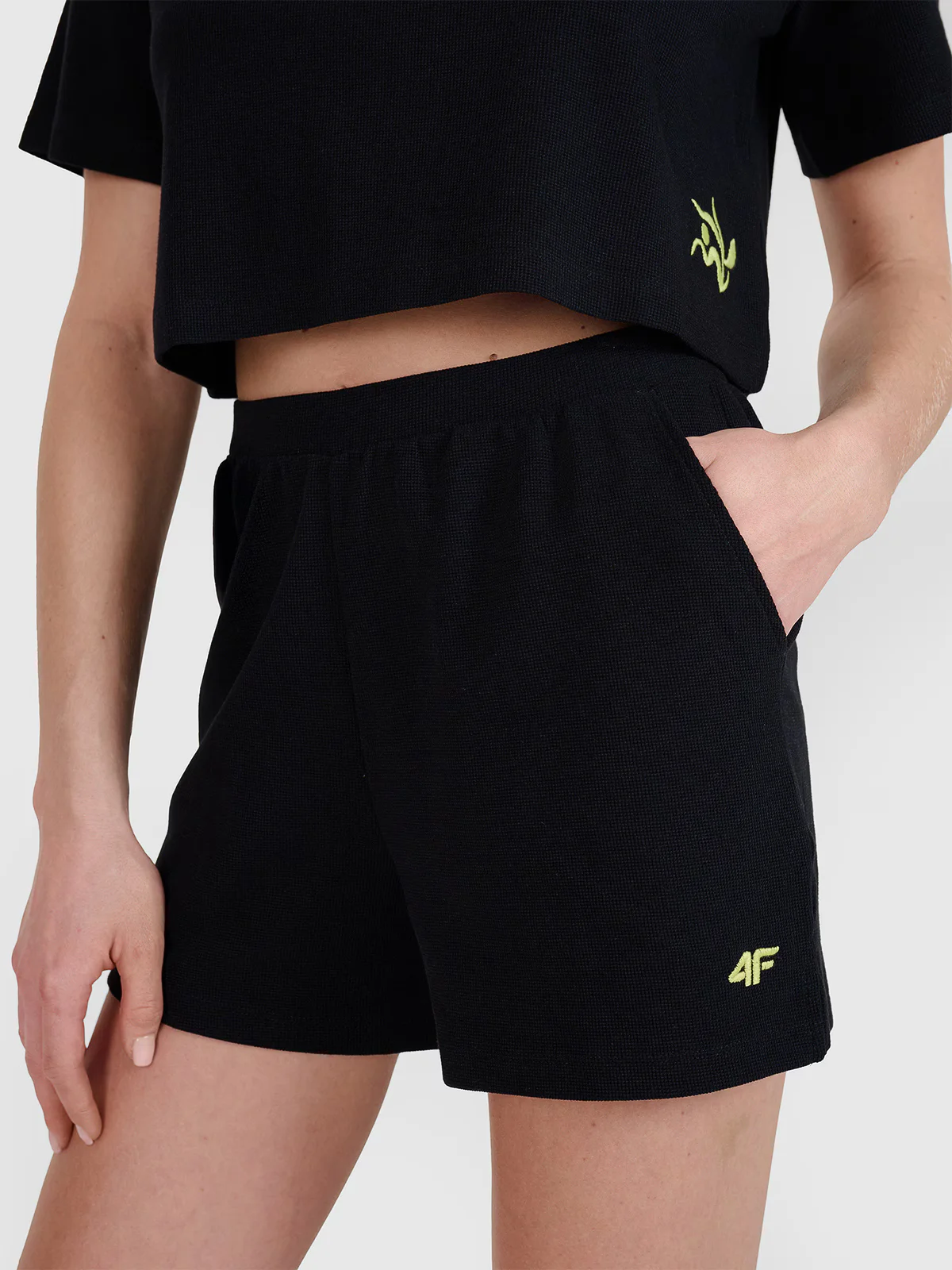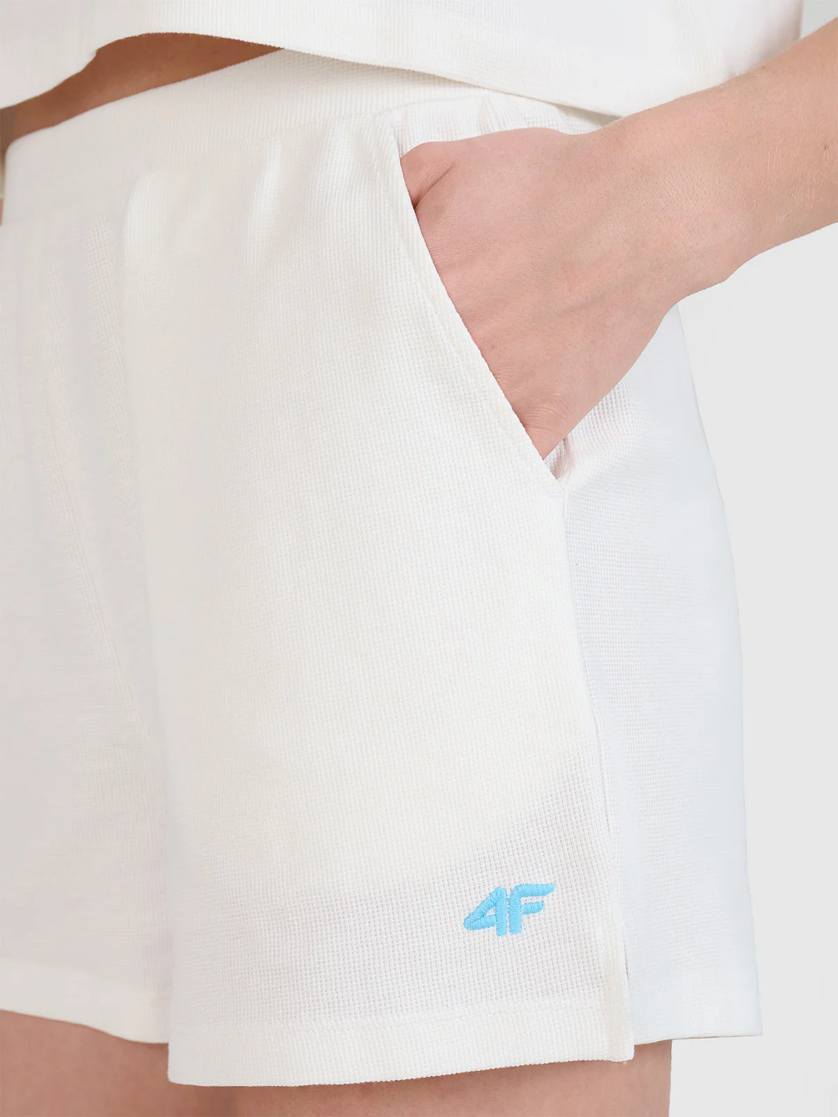 Damskie spodenki dresowe są wykonane w 100% z bawełny, dzięki czemu są miękkie, trwałe i przyjemne w dotyku. Dzianina waflowa charakteryzuje się wyraźnym, widocznym splotem.