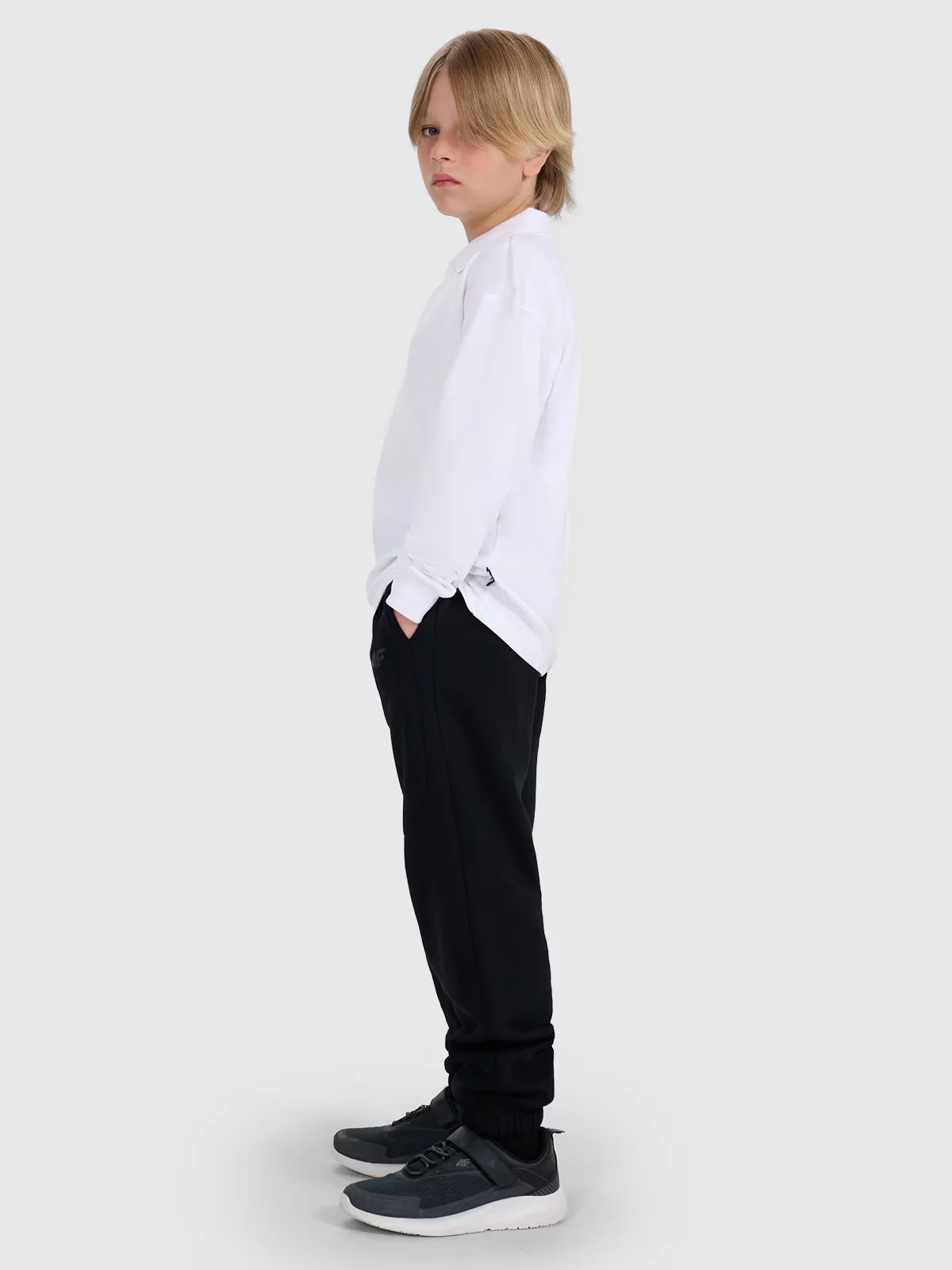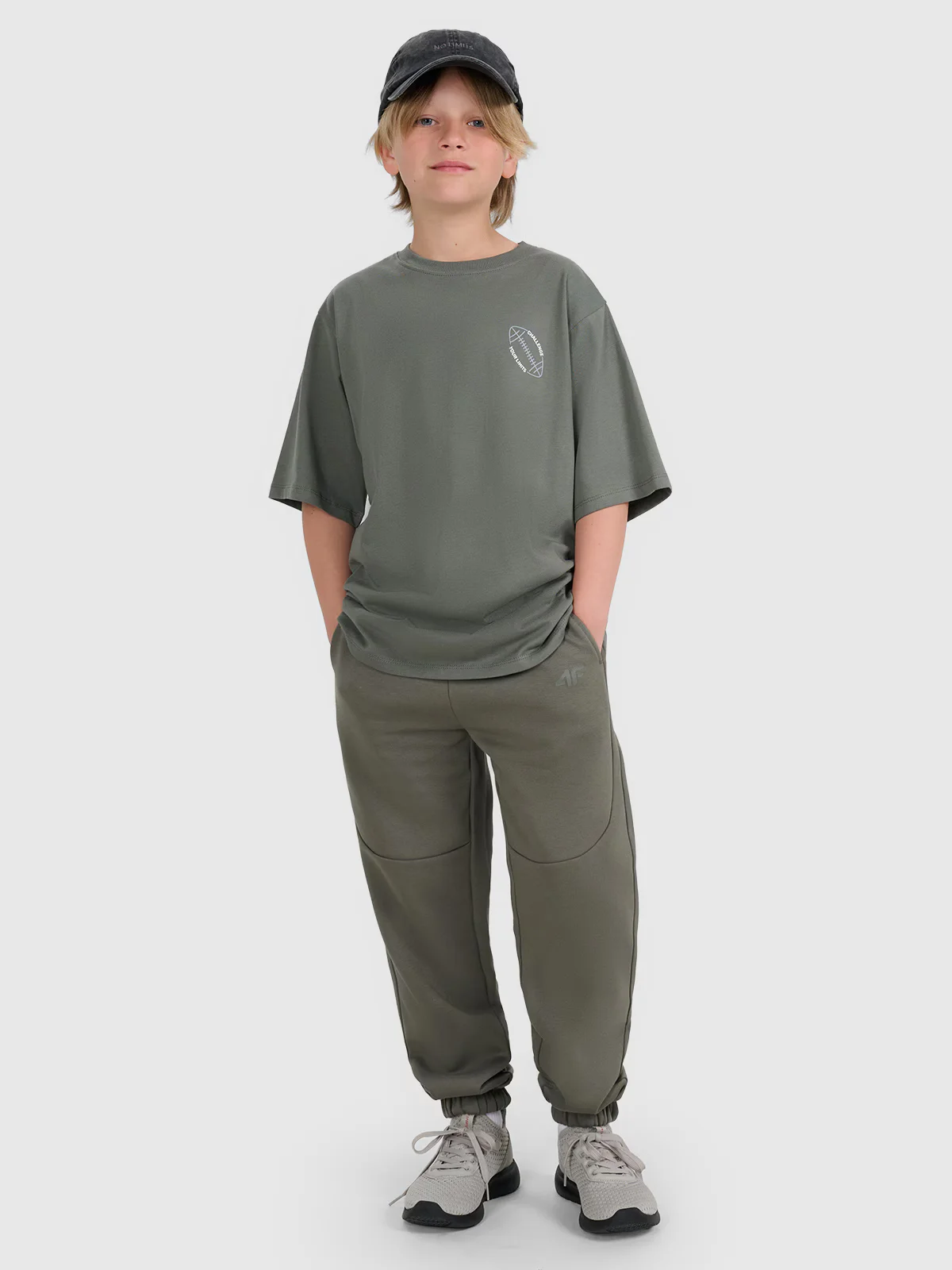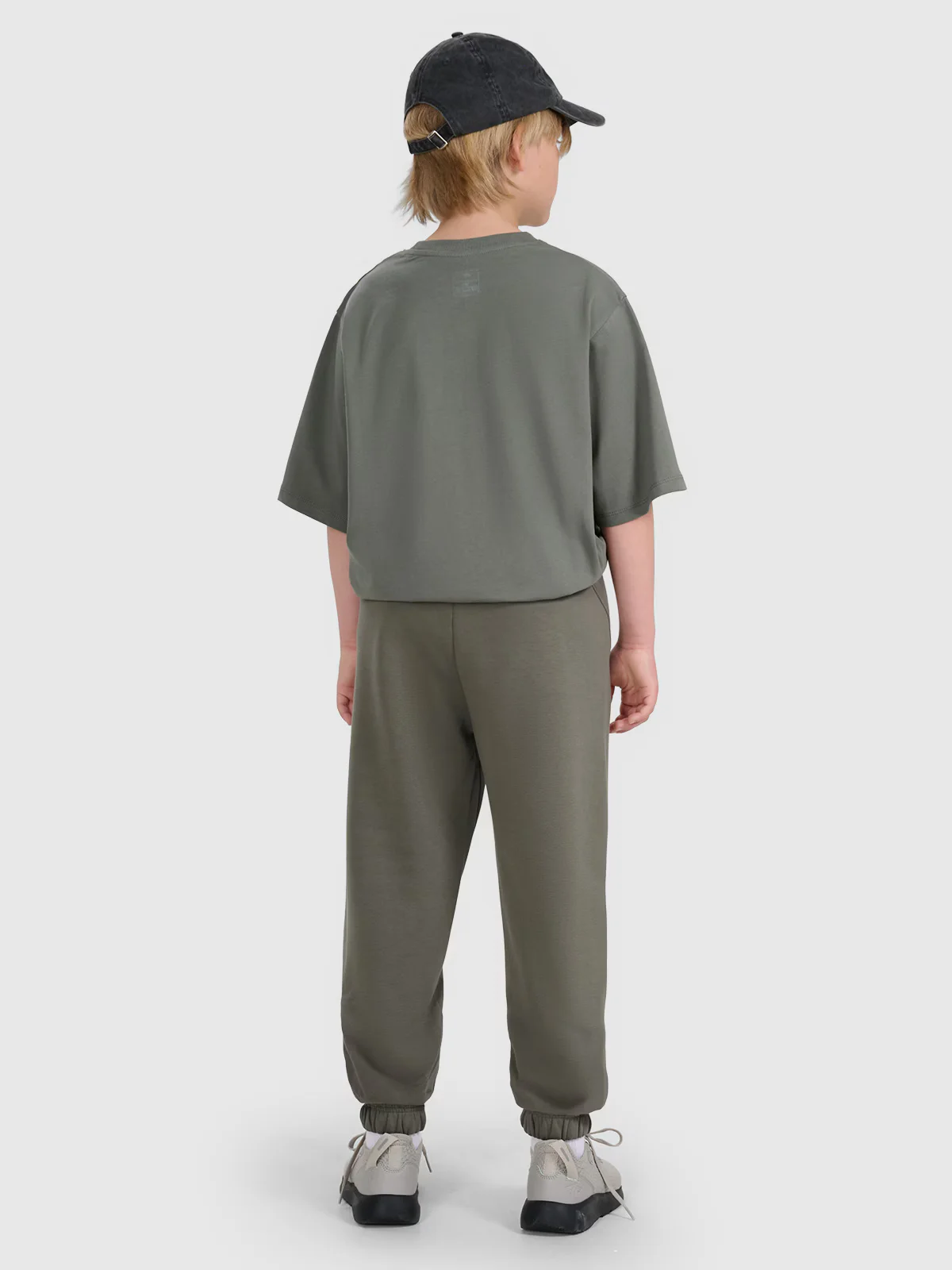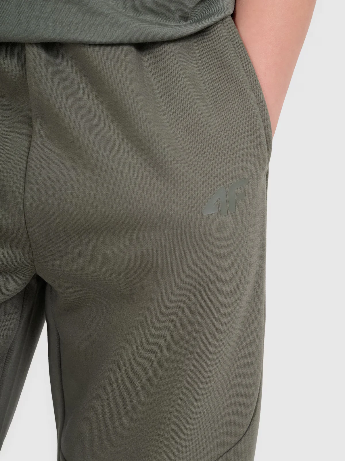 Dresy 4F dla chłopaka wykonane z dzianiny o średniej gramaturze 300 gsm, która sprawia, że są one miękkie oraz bardziej przewiewne.
