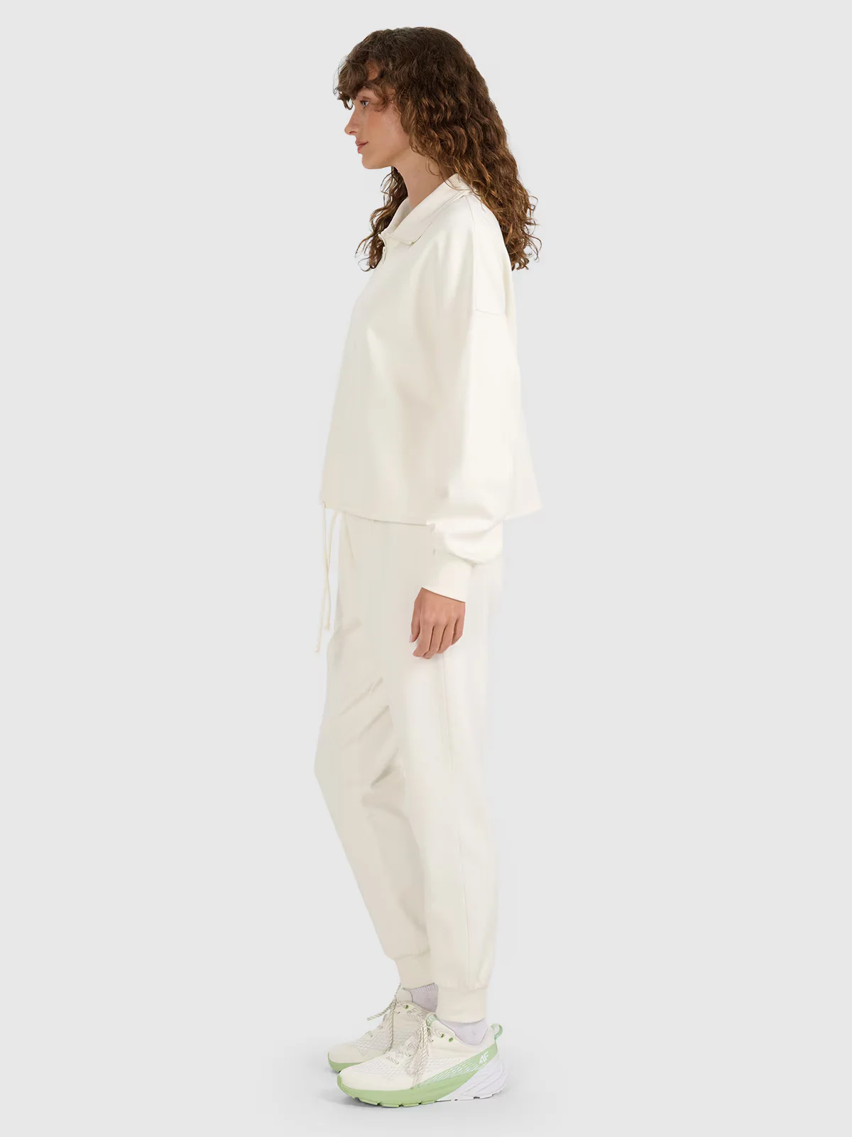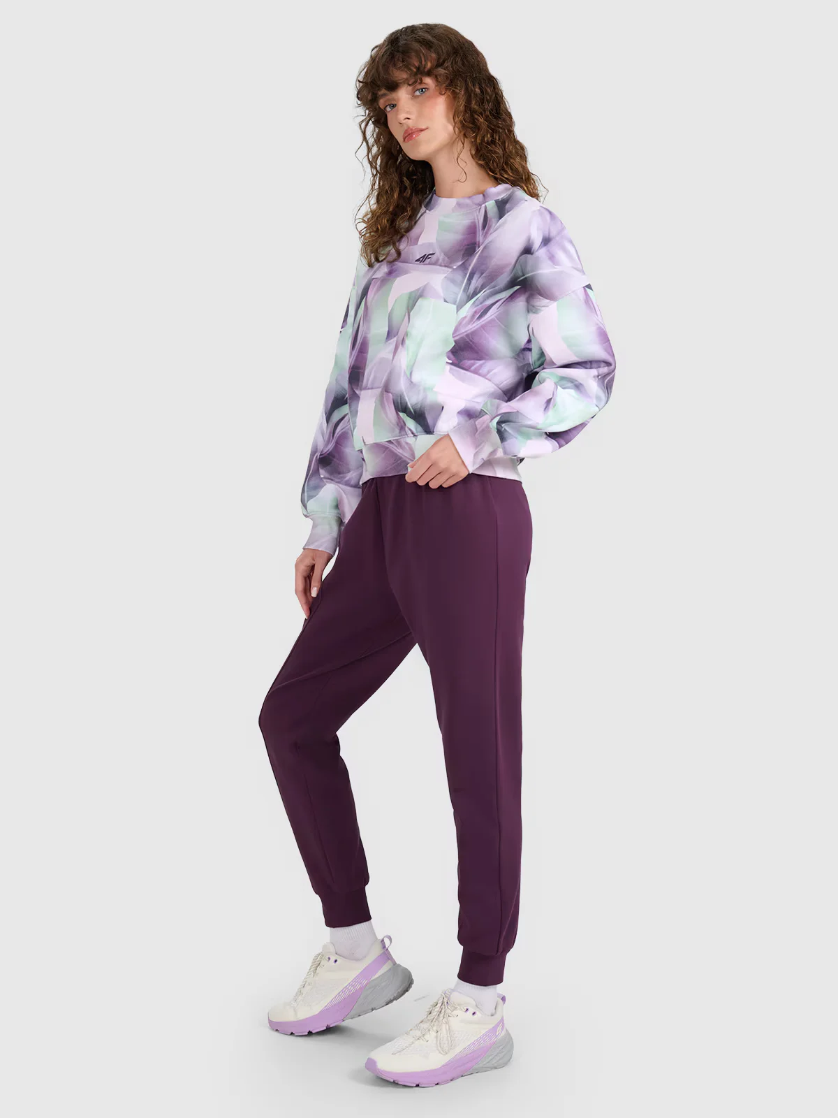 Dresy 4F dla kobiety wykonane z dzianiny o średniej gramaturze 300 gsm, która sprawia, że są one miękkie oraz bardziej przewiewne.