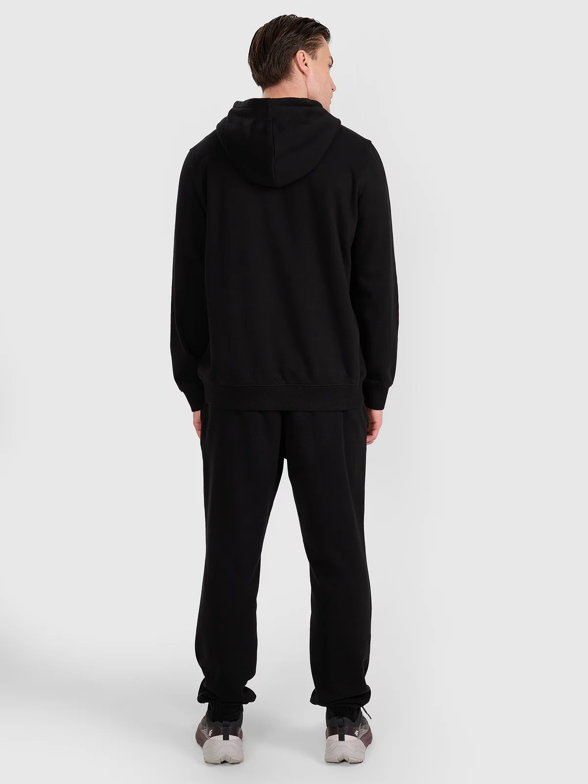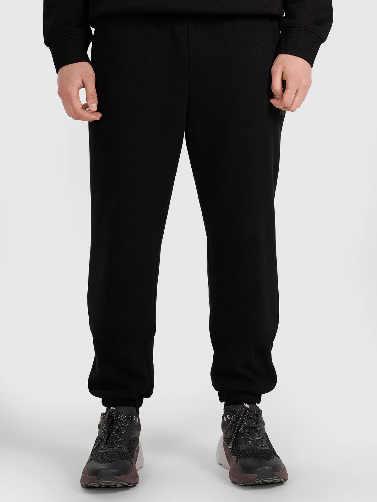 Spodnie dresowe męskie idealnie sprawdzą się jako element zarówno casualowych, jak i sportowych stylizacji na co dzień. Posiadają krój regular, który wygodnie dopasowuje się do sylwetki oraz zwężane nogawki zakończone elastyczną gumką.