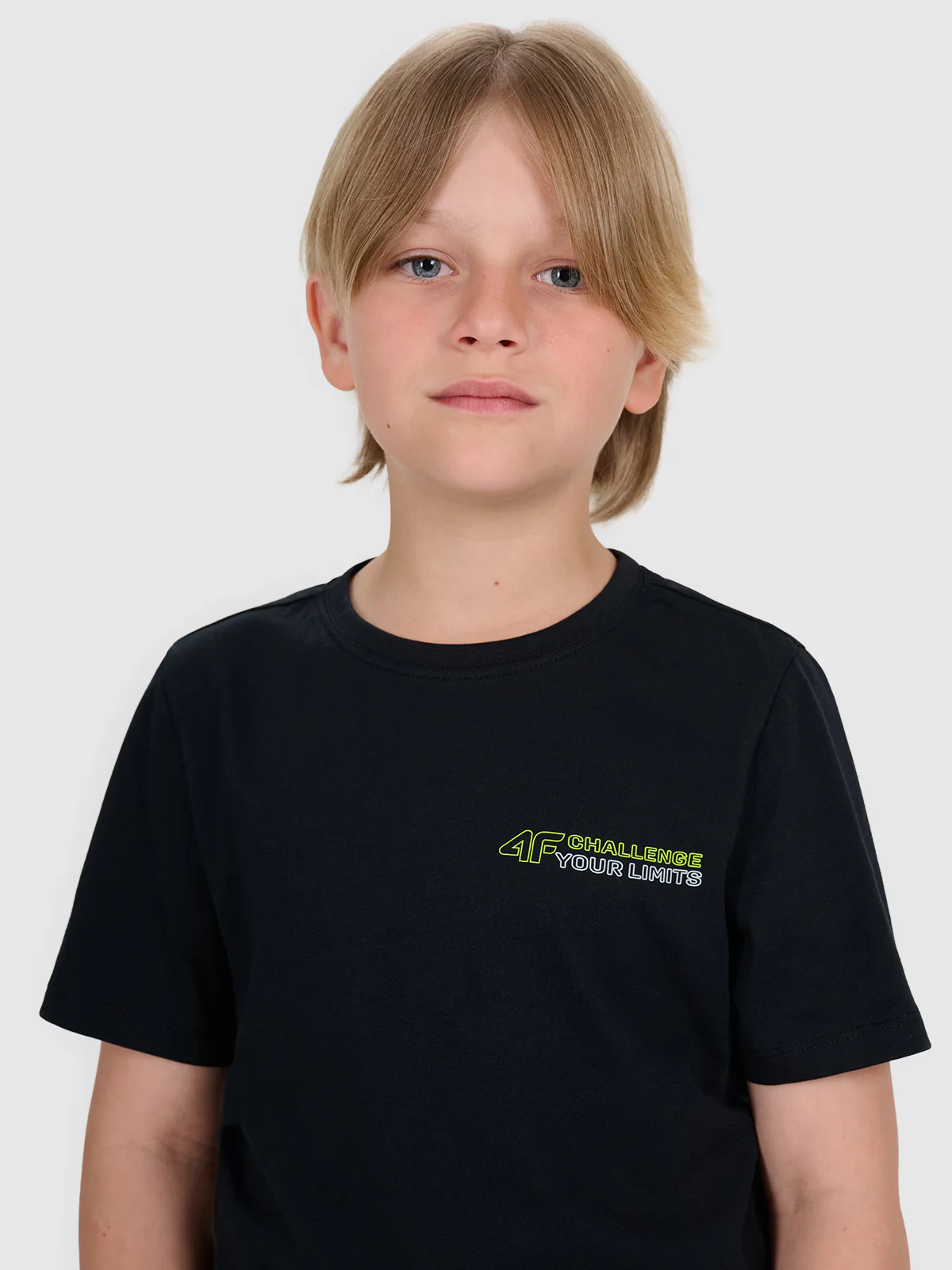 T-shirt 4F chłopięcy jest wykonany w 100% z bawełny, dzięki czemu jest miękki, trwały i przyjemny w dotyku.